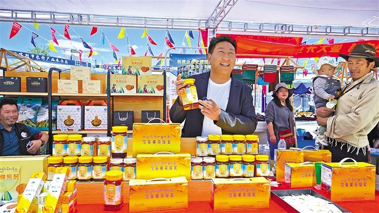 在日喀則高原農(nóng)特產(chǎn)品及尼泊爾特色產(chǎn)品展示展銷活動上,商家在展示自家產(chǎn)品。記者 扎西頓珠 旦增嘎瓦 攝