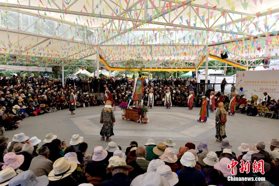 6月12日,藏戲藝人在拉薩市宗角祿康公園表演。從6月9日起,拉薩2024年“藏戲演出季”啟幕。布達拉宮腳下的宗角祿康公園,5支民間藏戲團隊表演的傳統(tǒng)藏戲劇目,吸引當?shù)孛癖姾陀慰颓皝碛^看。李林 攝