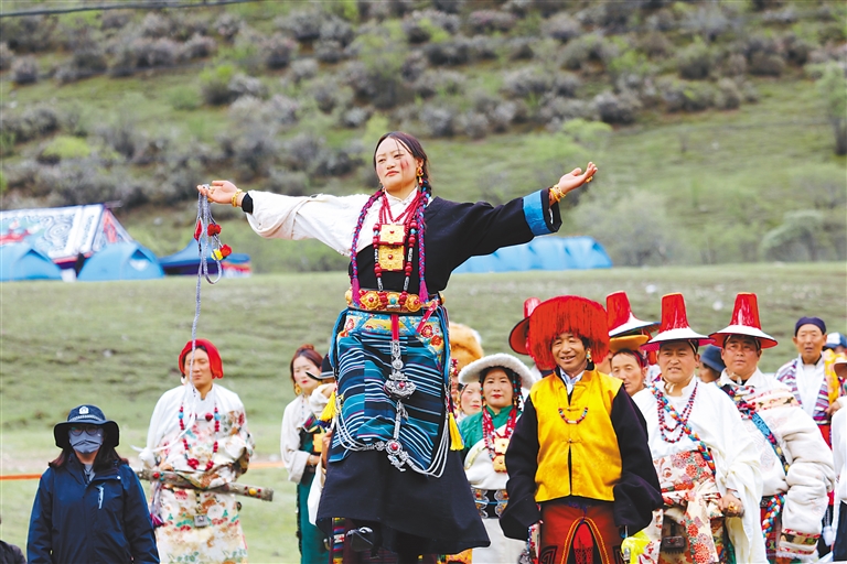 開(kāi)幕式結(jié)束后,“春踏林周·悅賞杜鵑”——2024林周縣“春賞杜鵑”生態(tài)藝術(shù)共享季系列活動(dòng)開(kāi)始。為了給廣大游客提供專業(yè)的旅拍服務(wù),主會(huì)場(chǎng)的杜鵑花賞花點(diǎn)被巧妙地轉(zhuǎn)化為一個(gè)充滿自然韻味的“攝影棚”,并推出“非遺”服飾體驗(yàn),讓游客更深入地感受和體驗(yàn)當(dāng)?shù)貍鹘y(tǒng)文化的魅力。同時(shí),圍繞林周縣北部的生態(tài)環(huán)境、藝術(shù)人文和“非遺”文化等設(shè)計(jì)開(kāi)展了徒步旅游活動(dòng),活動(dòng)融合“農(nóng)文旅體”等內(nèi)容,從專業(yè)性的內(nèi)容植入、技能型的活動(dòng)設(shè)計(jì)等方面來(lái)增強(qiáng)徒步旅游的品質(zhì)。旁多鄉(xiāng)的達(dá)龍藏戲、唐古鄉(xiāng)的熱振曲卓、阿朗鄉(xiāng)的“果諧”還給觀眾帶來(lái)了精彩的“非遺”表演。
