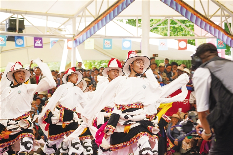 從傳統(tǒng)民族舞到現(xiàn)代創(chuàng)新舞,每支舞蹈都蘊(yùn)含著藏族人民對(duì)家鄉(xiāng)的熱愛(ài)和對(duì)美好生活的向往。比賽中,參賽人員身著特色民族服飾,伴隨著優(yōu)美激昂的旋律,踩著歡快的節(jié)拍,以飽滿(mǎn)的熱情和精湛的舞技,演繹了一場(chǎng)精彩而富有特色地域文化的廣場(chǎng)舞盛宴,凸顯了非物質(zhì)文化遺產(chǎn)的傳承創(chuàng)新發(fā)展。
