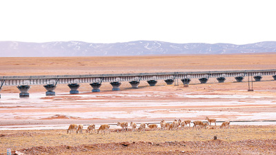 作為世界上海拔最高、線路最長的高原鐵路,青藏鐵路全線通過長江、怒江、雅魯藏布江等水系,沿線分布著可可西里、三江源、色林錯(cuò)3個(gè)國家級(jí)自然保護(hù)區(qū)和類型眾多、面積廣闊的自然濕地,生態(tài)環(huán)境原始、獨(dú)特而脆弱。藏羚羊的遷徙路線,也與青藏鐵路有所重合。
