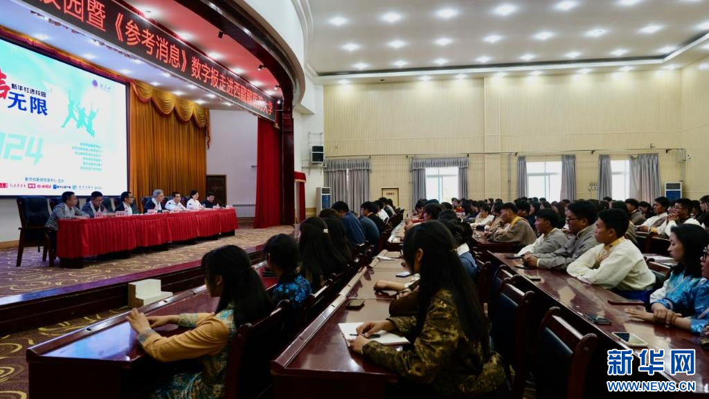 20日,“新聲無限——2024年新華社進(jìn)校園活動”在西藏藏醫(yī)藥大學(xué)舉行。新華社參考消息報社向西藏藏醫(yī)藥大學(xué)贈閱了《參考消息》數(shù)字報。參考消息報社總編輯陶德言,新華社西藏分社分黨組成員、副社長林建楊和西藏藏醫(yī)藥大學(xué)黨委書記、副校長鞠明兵致辭,西藏藏醫(yī)藥大學(xué)黨委委員、副校長于廣琮主持活動儀式,參考消息報社專題室主任田寶劍 與到場師生進(jìn)行面對面分享交流。