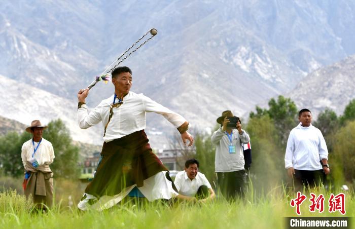當斜挎在身的放牧工具變身運動會上的比賽項目,參賽選手和觀眾都覺得難度提高了不少?!捌綍r放牧,用古朵甩石頭只是一個大概的方向,能憑借聲音指揮牲畜或者嚇退野獸就行。比賽可不是這樣,得擊中60米外的目標?!北M管難度不小,來自西藏拉薩市林周縣唐古鄉(xiāng)的多吉赤多依舊很高興能參加這樣的比賽。