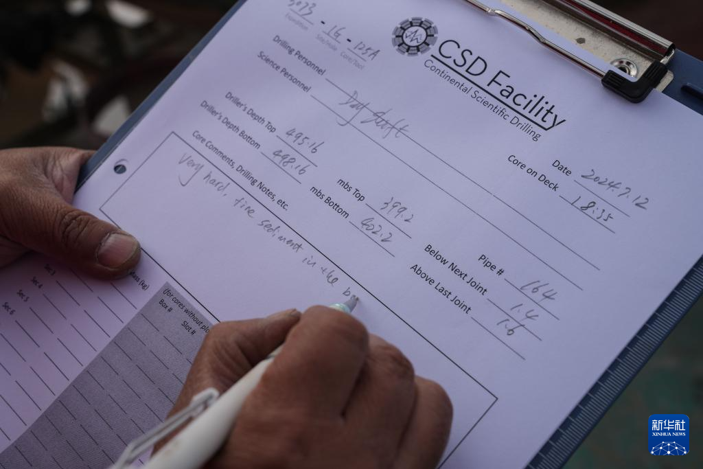 7月12日,科研隊(duì)員在登記納木錯湖底402.2米深度湖泊巖芯樣品信息。新華社記者 晉美多吉 攝