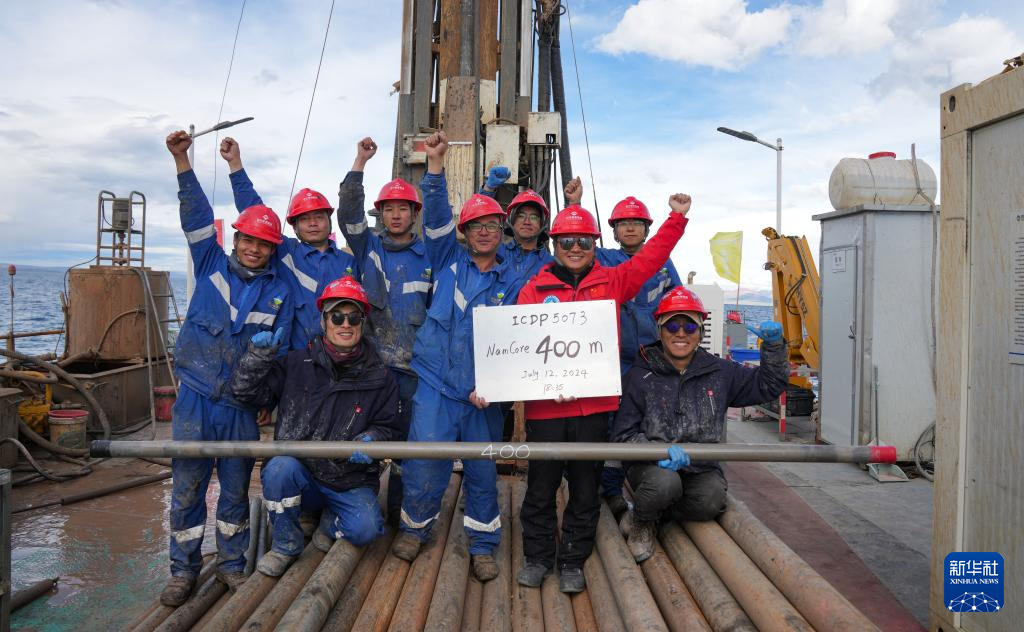 12日18時35分,在海拔超4700米的納木錯中心湖區(qū),多國聯(lián)合科考隊(duì)經(jīng)過不懈努力,成功在湖底深度402.2米的地方獲取了湖泊巖芯。這是我國首次在青藏高原大湖鉆探中成功突破400米的深度,打破了2020年納木錯湖泊鉆探153.44米的最深鉆探紀(jì)錄,對我國湖泊鉆探與古氣候的研究具有重要的推動意義。