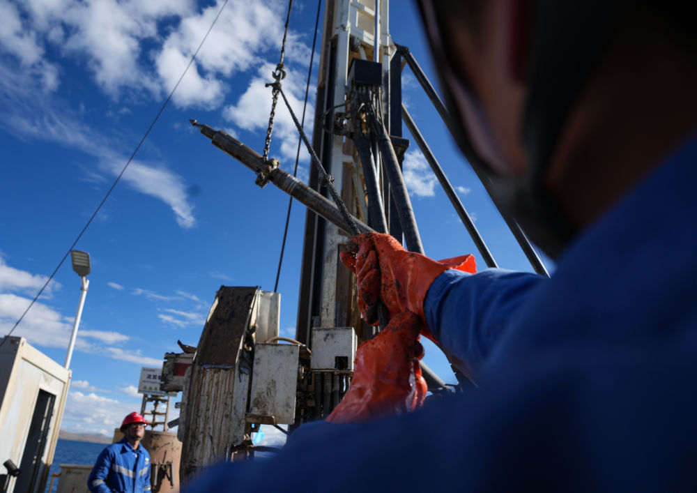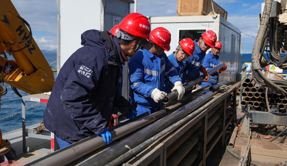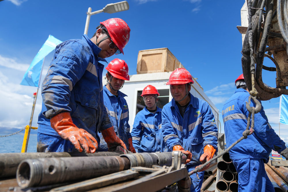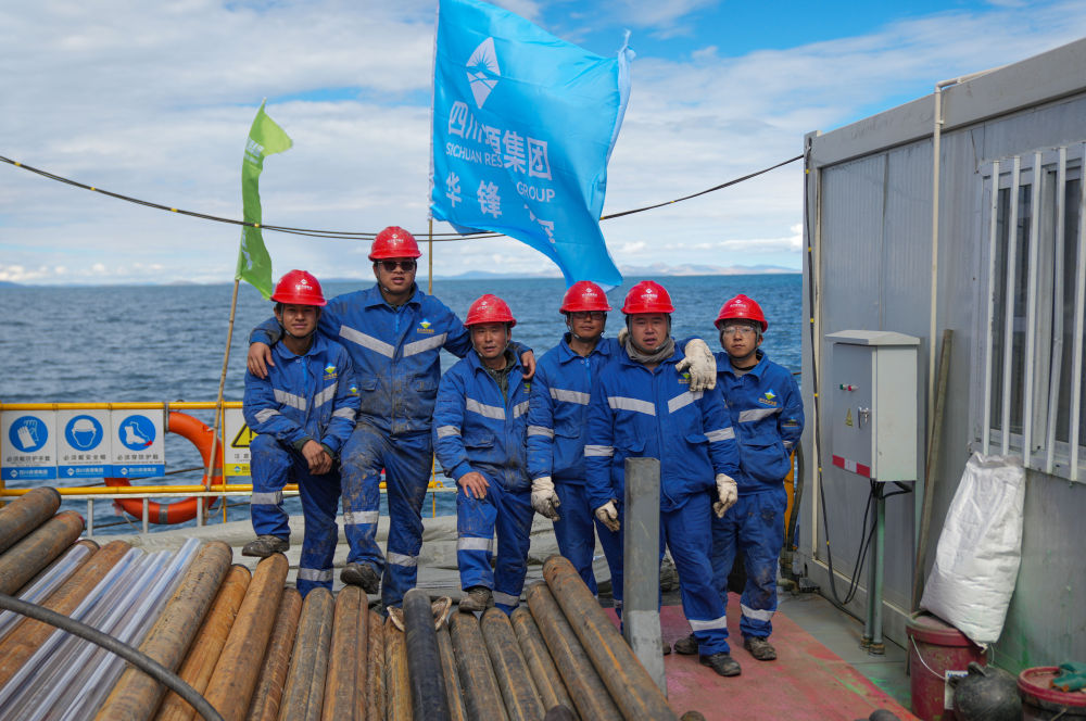 在海拔超過4700米的西藏納木錯中心湖區(qū),21名來自五湖四海的鉆探專業(yè)技術人員,全天24小時輪班奮戰(zhàn)在面積僅200平方米的水上鉆探平臺上,協助第二次青藏科考科研人員提取湖泊巖芯樣品,這些樣本如同寶貝一樣,封存著青藏高原納木錯地區(qū)百萬年來的環(huán)境氣候變化信息。 擔任這次湖泊巖芯鉆探任務的是四川資源集團華鋒鉆探隊。他們從5月31日入駐科考營地、6月6日鉆取第一批湖泊巖芯樣品以來一直奮戰(zhàn)至今。這群平均年齡31歲的鉆探隊員常年工作在高海拔地區(qū),有著豐富的鉆探經驗,此次鉆探是他們第一次進行高海拔湖泊鉆探。目前納木錯鉆探深度突破400米,達到國內高海拔深水大湖的鉆探新紀錄。這些鉆探隊員在見證奇跡,也在創(chuàng)造歷史。
