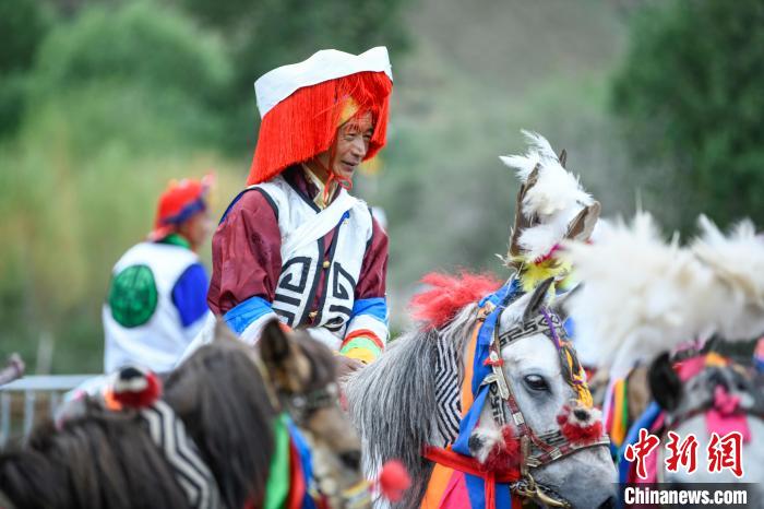 7月21日,西藏自治區(qū)拉薩市堆龍德慶區(qū)馬鎮(zhèn)朗巴村民眾賽馬歡度“望果節(jié)”。“望果節(jié)”民俗已有1500多年的歷史,是國(guó)家級(jí)非物質(zhì)文化遺產(chǎn)。圖為騎手準(zhǔn)備比賽。中新社記者 貢嘎來松 攝