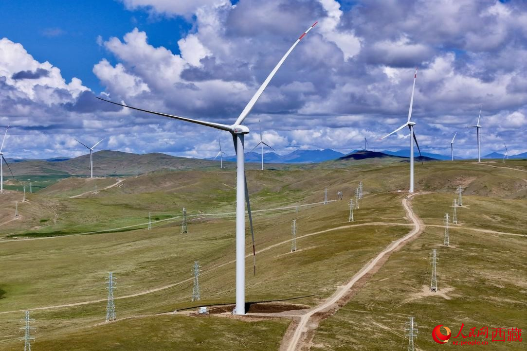 位于西藏那曲市色尼區(qū)的歐瑪亭嘎風(fēng)電場(chǎng)。人民網(wǎng)記者 次仁羅布攝