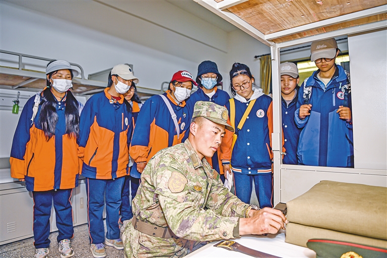 圖為八一建軍節(jié)前夕,西藏日喀則軍分區(qū)聯(lián)合日喀則市委宣傳部開(kāi)展“強(qiáng)國(guó)復(fù)興有我”系列軍旅活動(dòng),組織青少年學(xué)生零距離感受軍營(yíng)風(fēng)采,切實(shí)提高國(guó)防意識(shí),激發(fā)愛(ài)國(guó)主義情懷。這是學(xué)生們參觀官兵宿舍。通訊員 馮千恩 劉煜欽 記者 楊子彥 攝