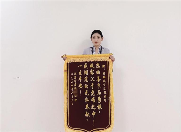 因機場醫(yī)療資源有限,達娃曲珍協(xié)助聯(lián)系救護車將旅客第一時間轉移至自治區(qū)第二人民醫(yī)院進行救治,并主動幫助旅客處理好后續(xù)票務問題。事后,旅客家屬聯(lián)系祥鵬航空客服平臺,表達了對達娃曲珍的感謝,并于返藏后送上一面錦旗再次表達了謝意。
