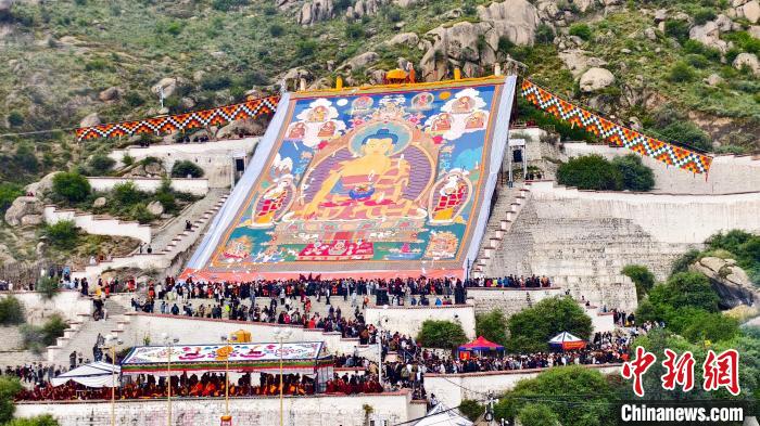 8月4日,拉薩哲蚌寺舉行展佛活動。中新社記者 貢桑拉姆 攝
