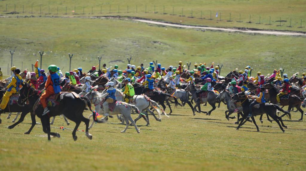 8月12日,上百匹賽馬在10公里傳統(tǒng)大跑項目中角逐。新華社記者晉美多吉攝