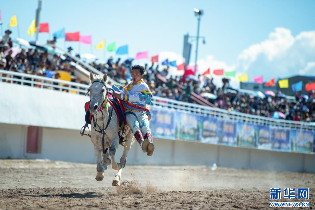 8月11日,騎手在走馬比賽中。新華網 旦增努布 攝