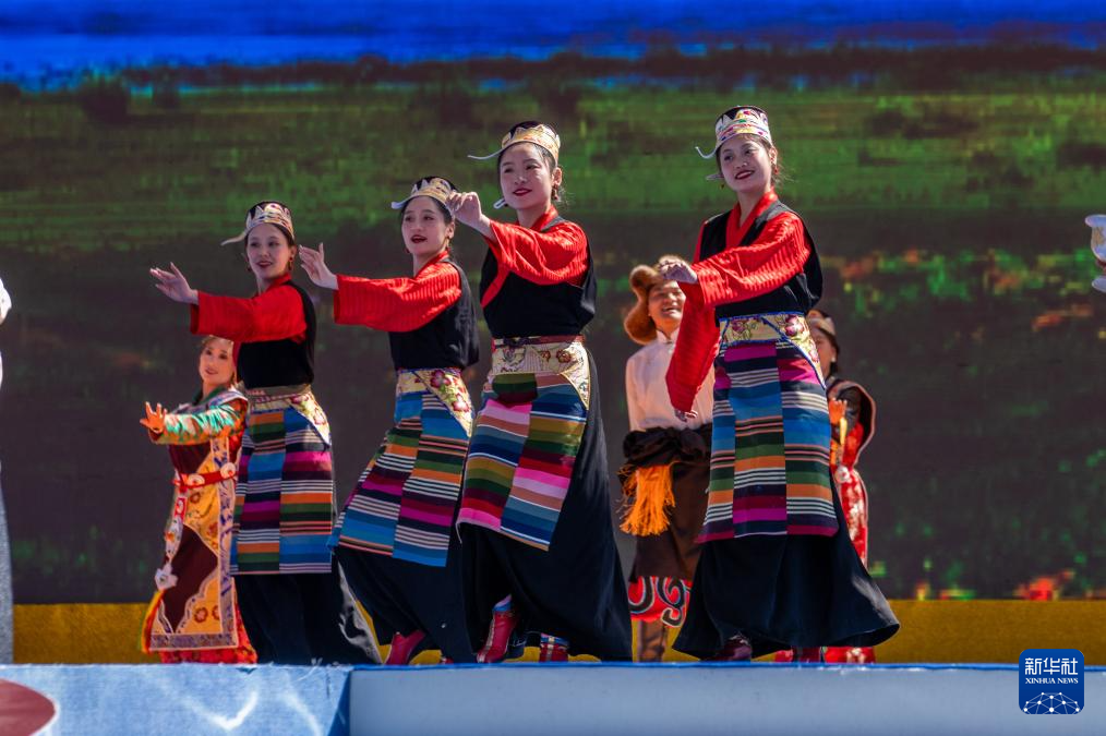 8月19日,演員在第十屆三江茶馬文化藝術(shù)節(jié)開幕式上跳起傳統(tǒng)舞蹈。新華社記者 旦增尼瑪曲珠 攝