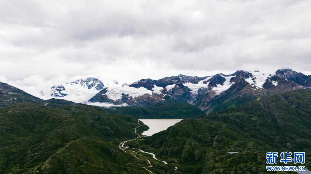 圖為8月18日拍攝的八宿縣境內(nèi)冰川融雪的自然景觀(無人機(jī)照片)。 新華網(wǎng)發(fā) 彭瑋希攝