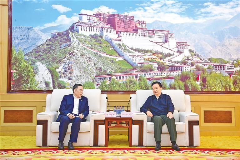 8月22日上午,自治區(qū)黨委書記王君正在拉薩與中國能建集團(tuán)董事長宋海良率隊(duì)的赴藏考察團(tuán)座談。這是座談現(xiàn)場。本報(bào)記者 旦增西旦 攝
