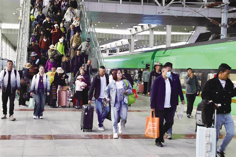 學(xué)生運輸是暑運后半程的運輸重點,青藏集團公司針對青藏兩省區(qū)上萬名內(nèi)高班學(xué)生返程的實際需求,暢通與地方教育部門以及各大高校招生部門溝通,提前掌握在讀學(xué)生返校及新生入學(xué)時間,針對學(xué)生旅客集中出行的實際,加大學(xué)校集中地區(qū)的票額供給,加強出行服務(wù)保障力度,在售票廳、自助售(?。┢睓C、檢票口等處所增加引導(dǎo)力量,動態(tài)增開人工驗票、驗證通道,組織志愿者幫助學(xué)生旅客進行優(yōu)惠資質(zhì)核驗,提供乘車指引、愛心搬運等暖心服務(wù),多措并舉保障廣大學(xué)生旅客順利返校。緊緊把握今年暑期跨省及青藏兩省區(qū)的“旅游熱”,青藏集團公司精心設(shè)計開發(fā)客運產(chǎn)品,相繼開行了4趟新疆方向旅游專列,全程開行青海網(wǎng)紅景點——“天空之鏡”茶卡鹽湖方向的1對臨客列車,增加了旅游目的地烏蘭、湟源、海晏等站點的動車組到站停靠時間,并主動加強與青藏兩省區(qū)市政交通部門協(xié)調(diào)聯(lián)動,加大客流集中時段的車輛運力投放,提升公交、出租車、景區(qū)大巴車等接駁運力,為夏日旅游經(jīng)濟注入動能。
