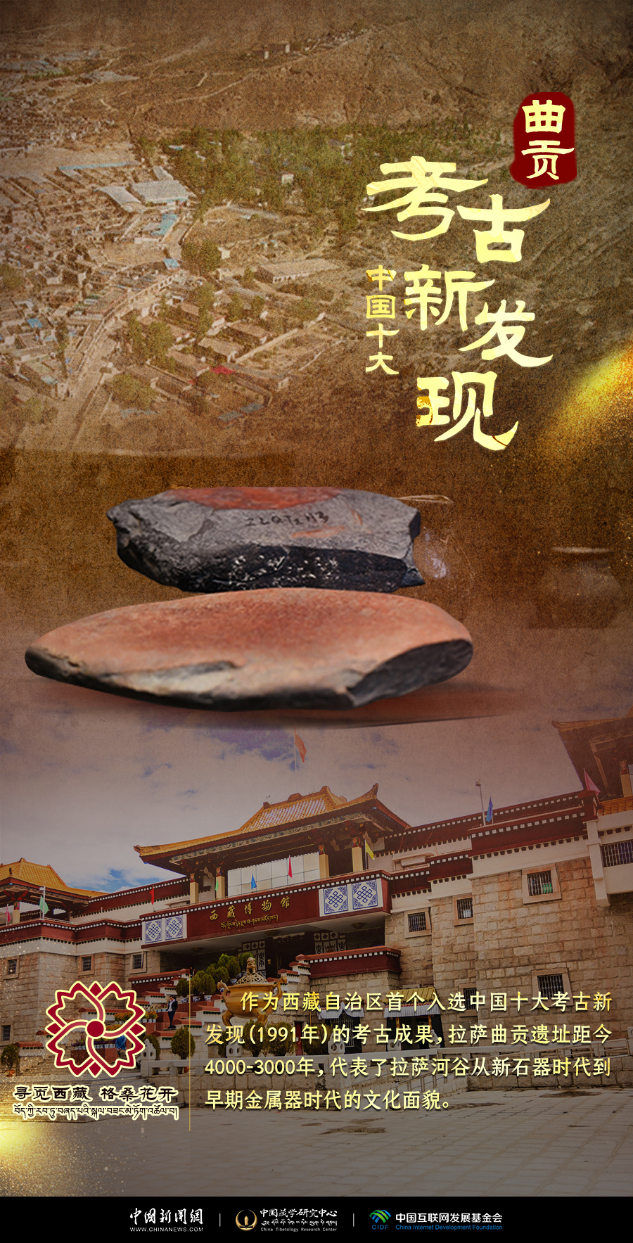 卡若遺址距今約5000年左右,第一次將西藏高原史前人類生存活動(dòng)的科學(xué)證據(jù)揭露于世。2021年10月,西藏昌都卡若遺址入選中國(guó)“百年百大考古發(fā)現(xiàn)”。曲貢遺址位于拉薩市北郊,距市區(qū)約五公里,是迄今在西藏發(fā)現(xiàn)的海拔最高、面積最大,文化層堆積較厚,文化內(nèi)涵極其豐富的遺址之一,被譽(yù)為拉薩的“半坡”。它們勾勒出青藏高原的文明年輪。