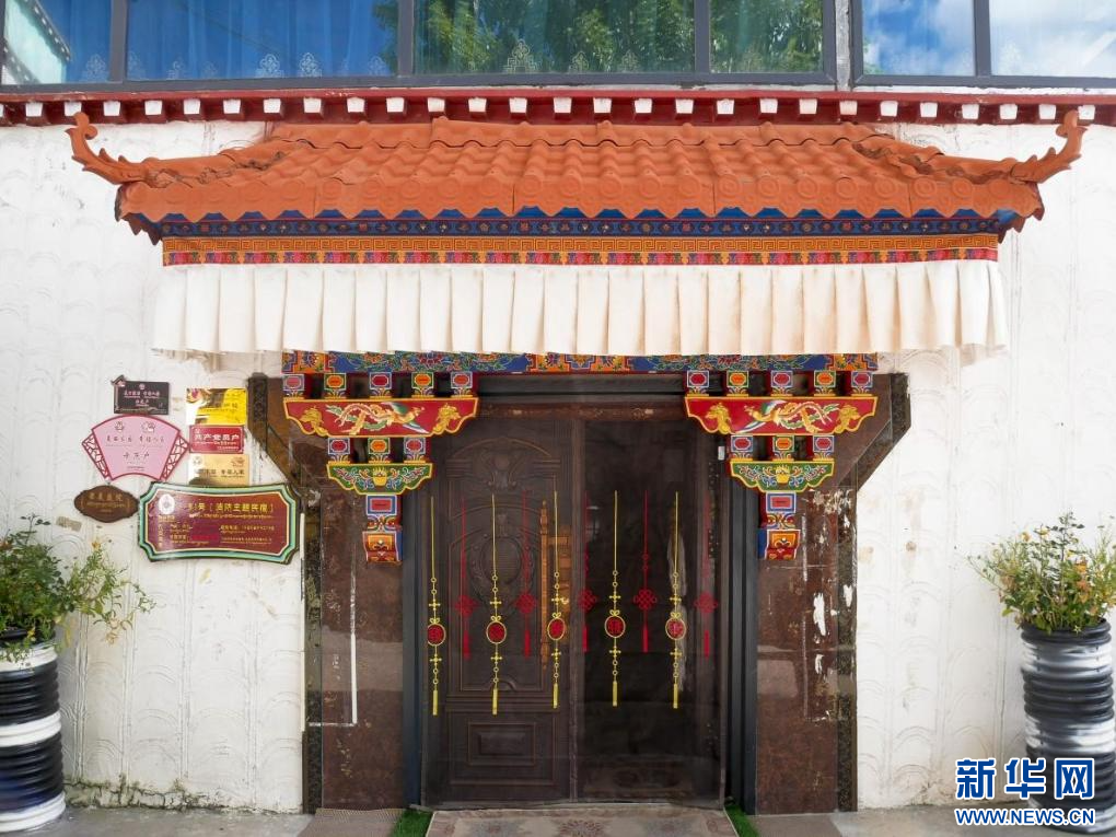 圖為扎西曲登社區(qū)內(nèi)民宿的大門(9月3日攝)。新華網(wǎng)發(fā) 文翔宇攝