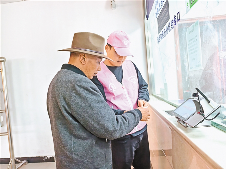 圖為志愿者幫助旅客確認乘車時間。 通訊員 金耀勛 記者 盧文靜 攝