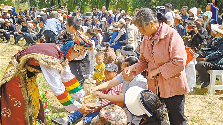 圖為林卡主題音樂會上,市民、游客在品嘗傳統(tǒng)美食。