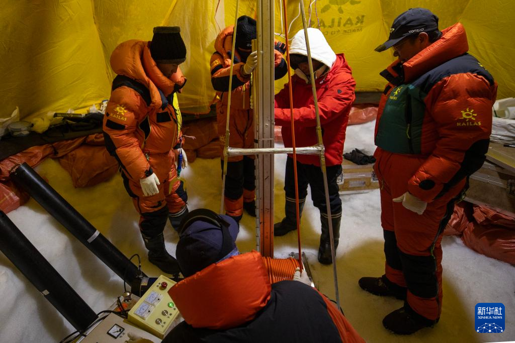 9月11日晚,由中國(guó)科學(xué)院青藏高原研究所副所長(zhǎng)徐柏青研究員帶領(lǐng)的科考團(tuán)隊(duì)在普若崗日冰原頂部海拔6100米的“Dome.C”點(diǎn)開(kāi)機(jī)鉆取冰芯。
