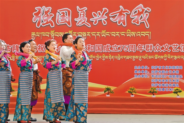 10月1日上午,“強國復(fù)興有我”群眾文藝演出在拉薩市宗角祿康公園舉行。記者 潘多 攝