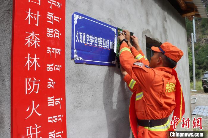 圖為張貼防火宣傳海報。察隅中隊供圖
