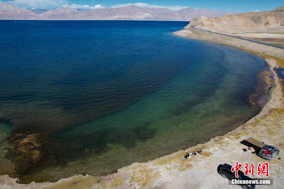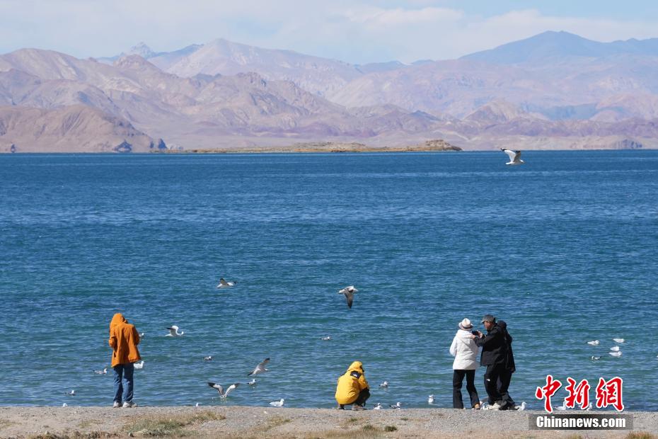 10月4日?!笆弧眹鴳c假期,不少游客來到西藏日土縣班公湖游玩。中新社記者 崔楠 攝