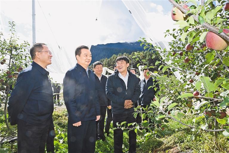 在巴宜區(qū)百巴鎮(zhèn)百巴村松贊帳篷營地、增巴村煙臺大山果業(yè)開發(fā)有限公司,王君正詳細了解了鄉(xiāng)村文旅融合、生態(tài)產(chǎn)業(yè)發(fā)展等情況。他指出,要加快推動文化旅游產(chǎn)業(yè)發(fā)展,堅持以文塑旅、以旅彰文,因地制宜探索新業(yè)態(tài)、新模式,培育品牌,惠及群眾,擴大影響,形成合力。堅持在保護中發(fā)展、在發(fā)展中保護,統(tǒng)籌生態(tài)修復(fù)和生態(tài)惠民,著力加強交通等基礎(chǔ)設(shè)施建設(shè),賦能鄉(xiāng)村全面振興。堅定不移把培育產(chǎn)業(yè)、發(fā)展產(chǎn)業(yè)、壯大產(chǎn)業(yè)擺在重要位置,立足特色優(yōu)勢資源,加強農(nóng)牧業(yè)技術(shù)推廣應(yīng)用,加快地方特色品種選育和良種繁育推廣,加大典型宣傳力度,發(fā)揮示范引領(lǐng),促進鄉(xiāng)村產(chǎn)業(yè)振興。完善利益聯(lián)結(jié)機制,持續(xù)發(fā)展壯大村集體經(jīng)濟和實體產(chǎn)業(yè)項目,推動農(nóng)業(yè)增效益、農(nóng)民增收入、農(nóng)村增活力,實現(xiàn)各民族共同發(fā)展、共同富裕。