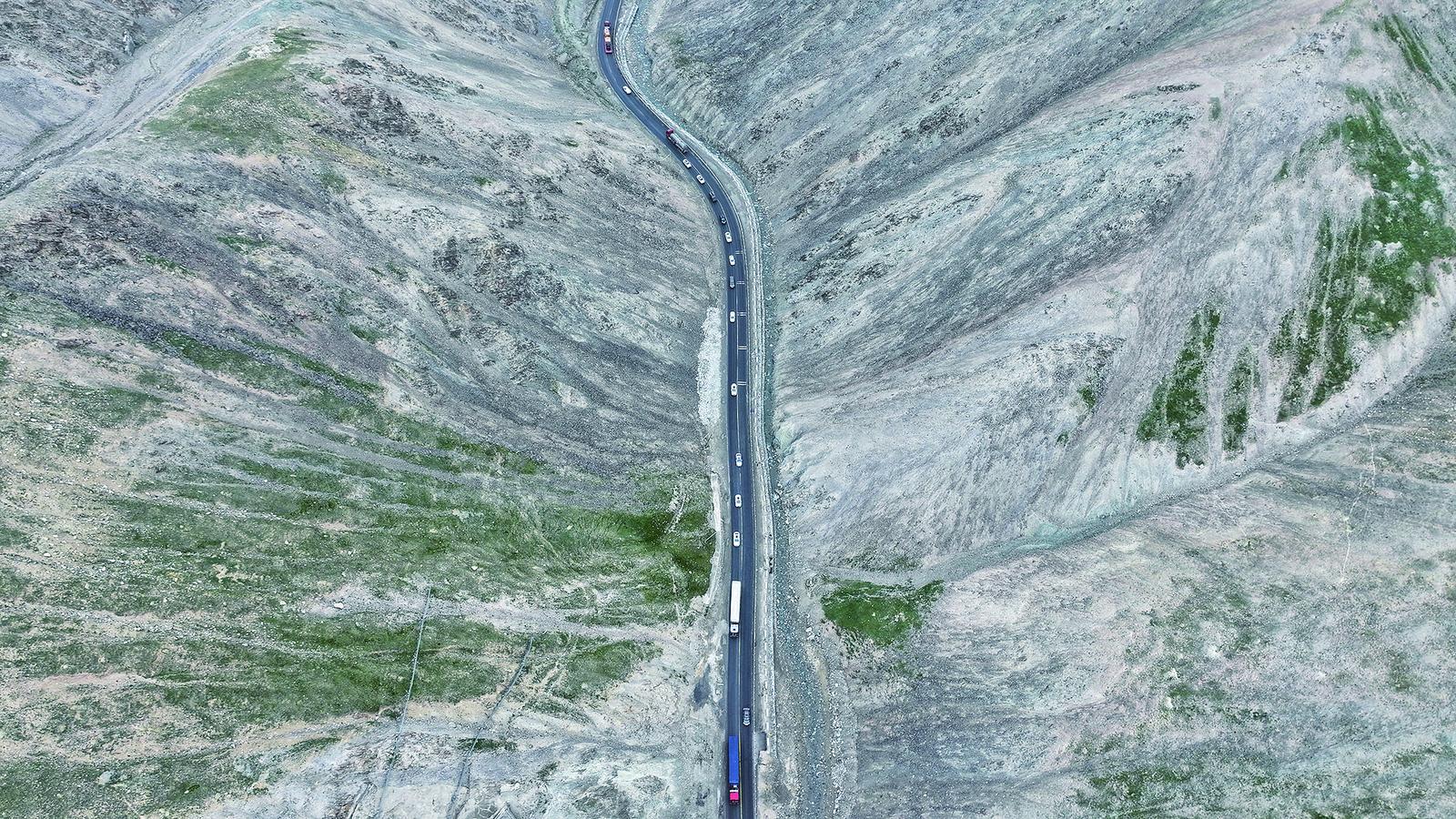 唐古拉,藏語意為“高原上的山”,唐古拉山即是高原的山嶺,山勢呈西北東南走向,終年積雪不化,是青海和西藏的分界線,大部分山脈海拔在6000米以上。唐古拉山是青藏公路必經關口,也是青藏公路的最高點。根據(jù)勘察,筑路指揮部選定海拔5231米的唐古拉山口作為公路翻山點。