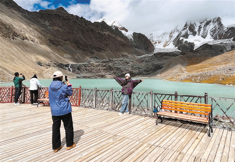 游客在尼木縣瓊穆崗嘎雪山景區(qū)合影留念。記者 旦增蘭澤 攝