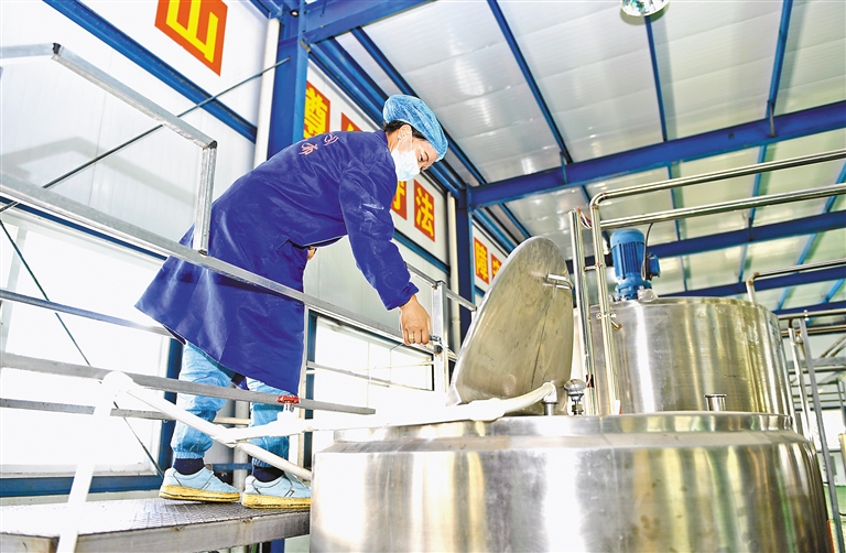 圖為西藏嘎布羅布牦牛乳業(yè)有限公司的工作人員在生產(chǎn)線工作。記者 旦增蘭澤 攝