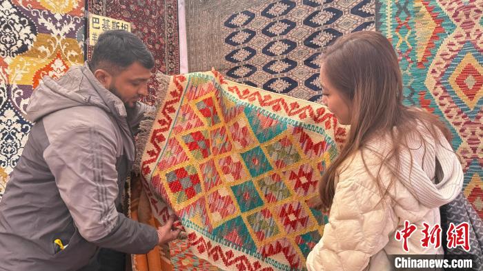 圖為拉薩民眾正在選購巴基斯坦的手工羊毛地毯。澤塔雍措 攝