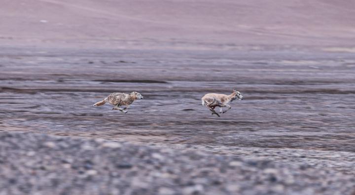 2024年6月14日,在西藏那曲市尼瑪縣境內(nèi)的羌塘國家級(jí)自然保護(hù)區(qū)“無人區(qū)”深處,一只野狼在追逐一只懷孕的母藏羚羊(視頻截圖)。新華社發(fā)(達(dá)瓦多吉攝)