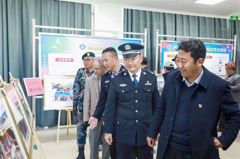 中尼雙方參加里孜口岸通關(guān)一周年慶典主要領(lǐng)導(dǎo)參觀里孜邊檢一周年成果展。
