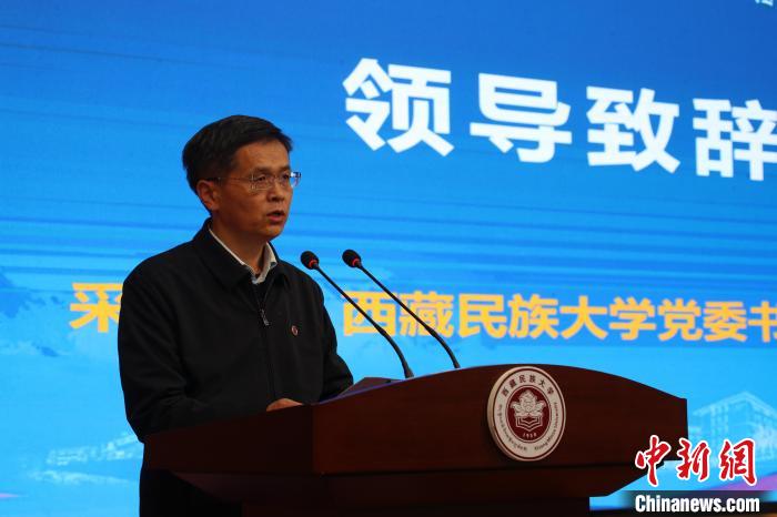西藏民族大學黨委書記、副校長采守寬在第四屆“藏秦·喜馬拉雅”論壇開幕式發(fā)表致辭。主辦方供圖