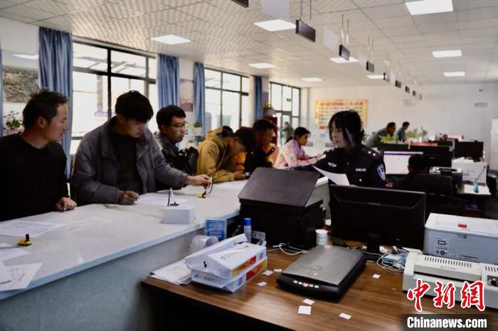 圖為西藏阿里邊境管理支隊札達(dá)邊境管理大隊辦證大廳內(nèi),民警正在為民眾辦證。陳孝東 攝