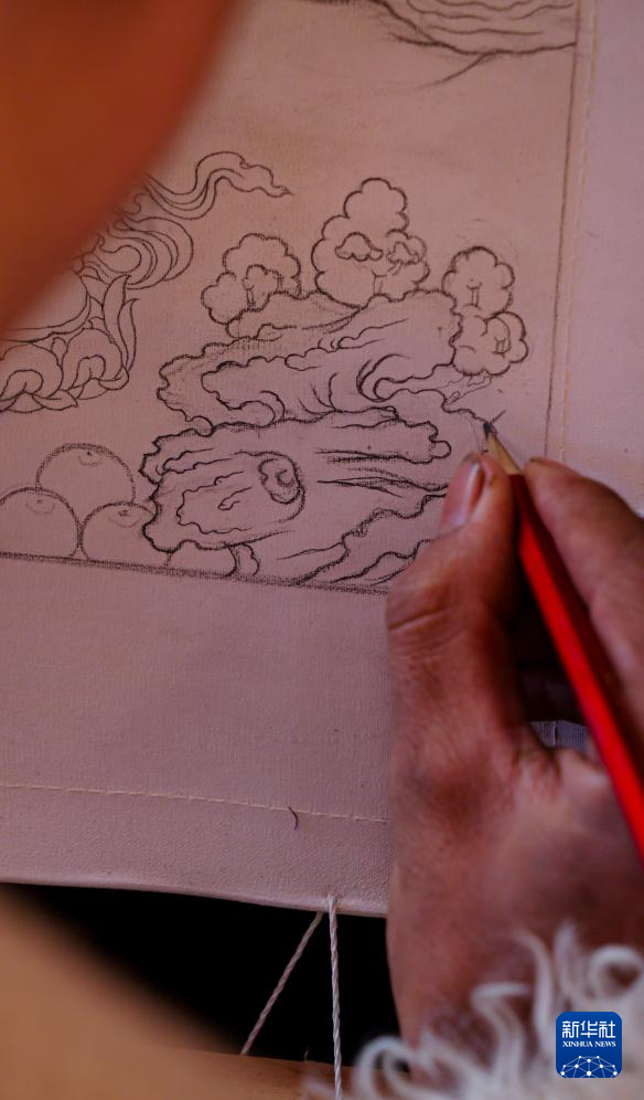 11月22日,昌都市丁青縣擁忠文化藝術(shù)中心非遺扶貧就業(yè)工坊學(xué)員在畫(huà)唐卡。新華社記者 格桑朗杰 攝