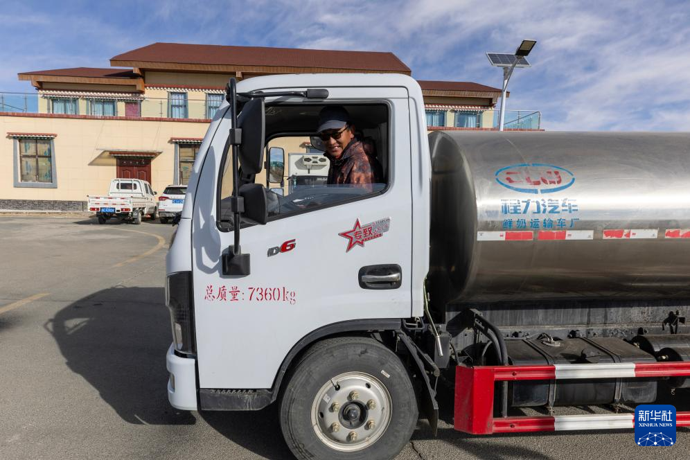 11月28日,駕駛員用罐車(chē)將巴氏殺菌后的新鮮牦牛奶運(yùn)往拉薩市場(chǎng)。新華社記者 姜帆 攝