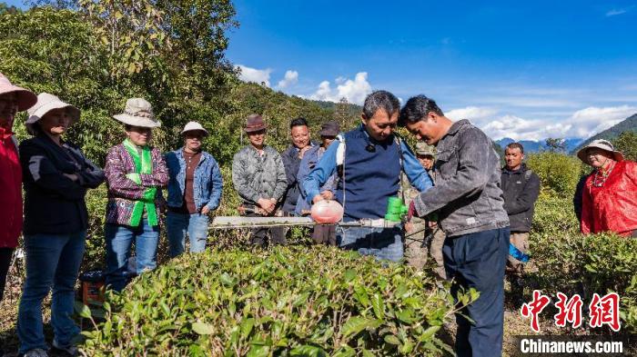 圖為技術(shù)專(zhuān)家詳細(xì)講解茶樹(shù)修剪的科學(xué)方法。墨脫縣人力資源和社會(huì)保障局供圖