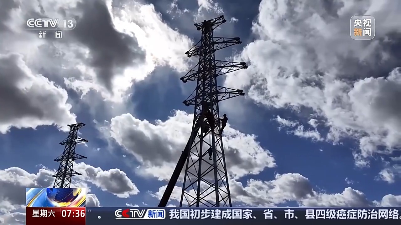 華電金上昌都新能源有限公司工程管理部主任 李兵兵:目前已完成樁基總施工和支架組件安裝,全力確保2025年與金上至湖北特高壓直流輸電線路同步建成投運。