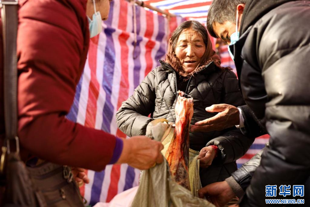 在現(xiàn)場(chǎng),人來人往,商品琳瑯滿目。扎念琴聲、推車聲、嬉笑聲此起彼伏,一派熱鬧繁忙的景象。