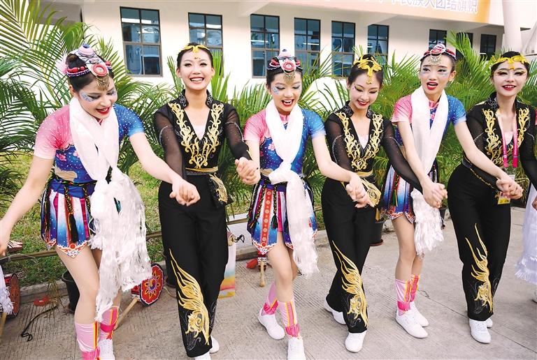 11月26日,運(yùn)動(dòng)會(huì)特別安排了“民族大聯(lián)歡”活動(dòng)。獨(dú)具海南特色的牛角號(hào)與蛙鑼齊齊奏響,喜迎八方賓客,表演者、運(yùn)動(dòng)員、教練員一起手拉手載歌載舞。西藏運(yùn)動(dòng)員身著盛裝,和來(lái)自北京西藏中學(xué)的運(yùn)動(dòng)員一起唱藏歌、跳鍋莊、送禮物,和香港特別行政區(qū)運(yùn)動(dòng)員互送吉祥物、紀(jì)念品,相互交流、拍照留念。