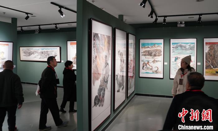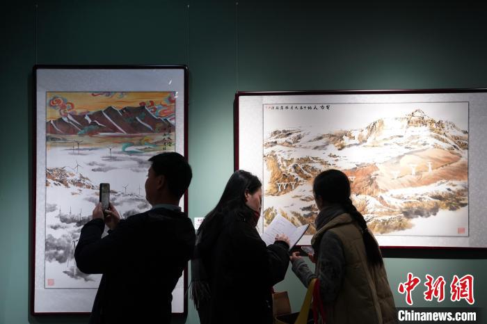圖為12月8日,“家在高原”中國(guó)畫作品展現(xiàn)場(chǎng)。中新社記者 蘇丹 攝