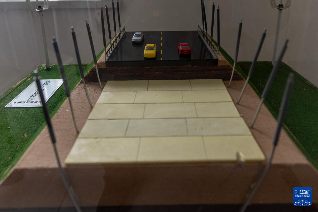 這是在中交第一公路勘察設(shè)計(jì)研究院有限公司格爾木觀測(cè)研究基地拍攝的“熱棒加XPS板路基”模型(12月3日攝)。新華社記者 姜帆 攝