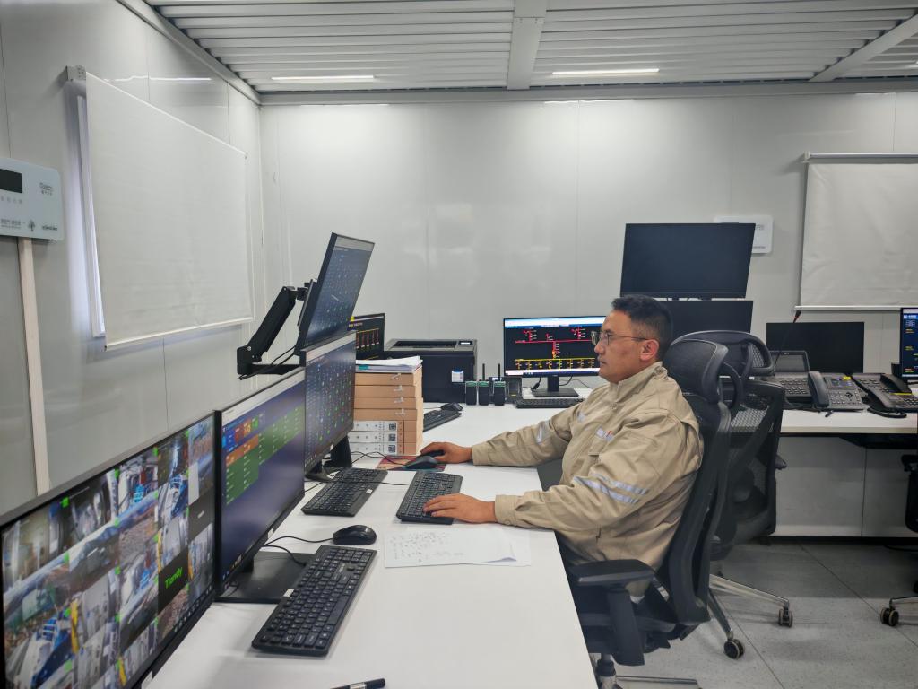 在西藏八宿縣,大唐八宿風電場運維技術員洛松澤仁在中控室監(jiān)測風機運行情況。(任明喬 攝)