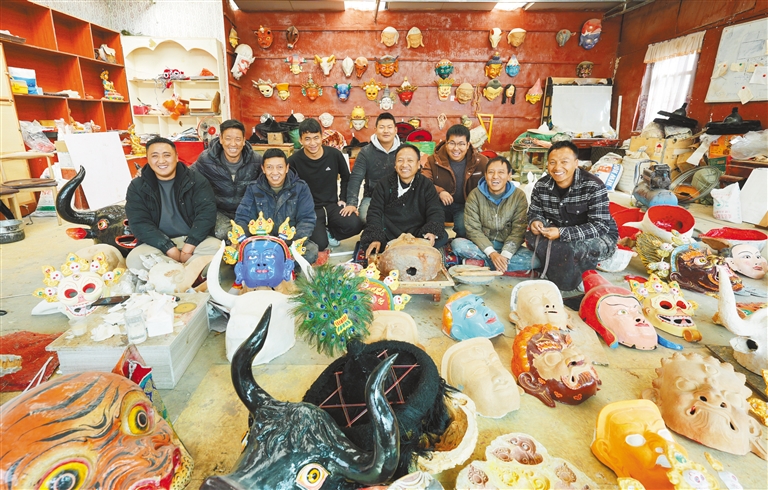 圖為合作社的工匠在制作西藏傳統面具。新華社記者 丁汀 攝