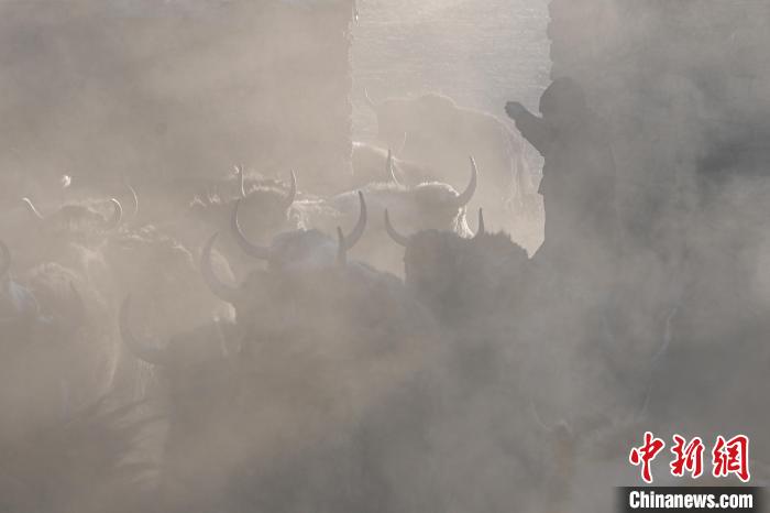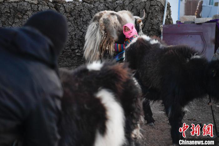 12月12日,西藏自治區(qū)那曲市安多縣帕那鎮(zhèn)牧民南色將自己的牦牛從牛圈放出。中新社記者 貢嘎來(lái)松 攝