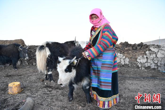 12月12日,西藏自治區(qū)那曲市安多縣帕那鎮(zhèn)牧民土巴卓瑪準(zhǔn)備去擠牦牛奶。中新社記者 貢嘎來(lái)松 攝